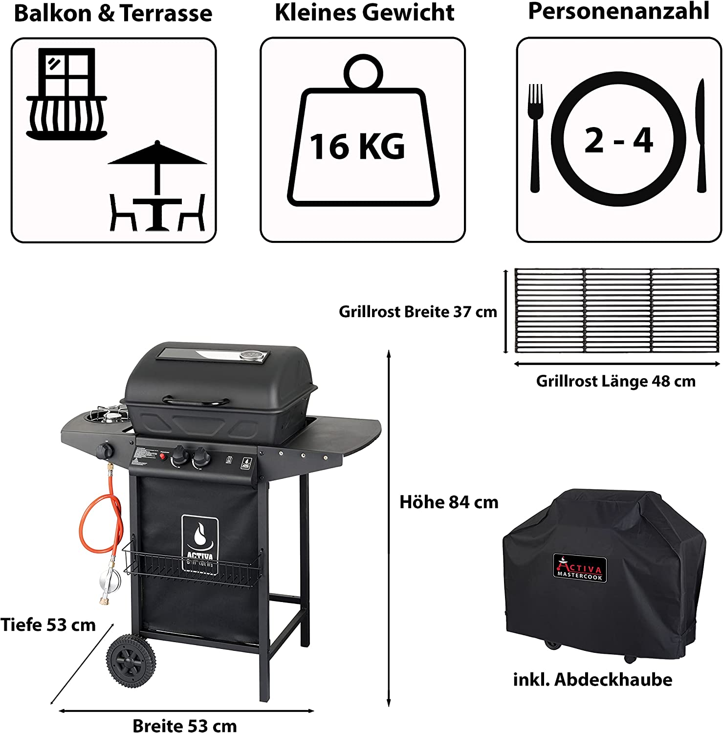 barbecue area of 48 x37 cm and is thus perfectly suited for the