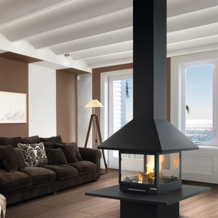 TRAFORART Wood Fireplace Central Vulcano Central With Glass